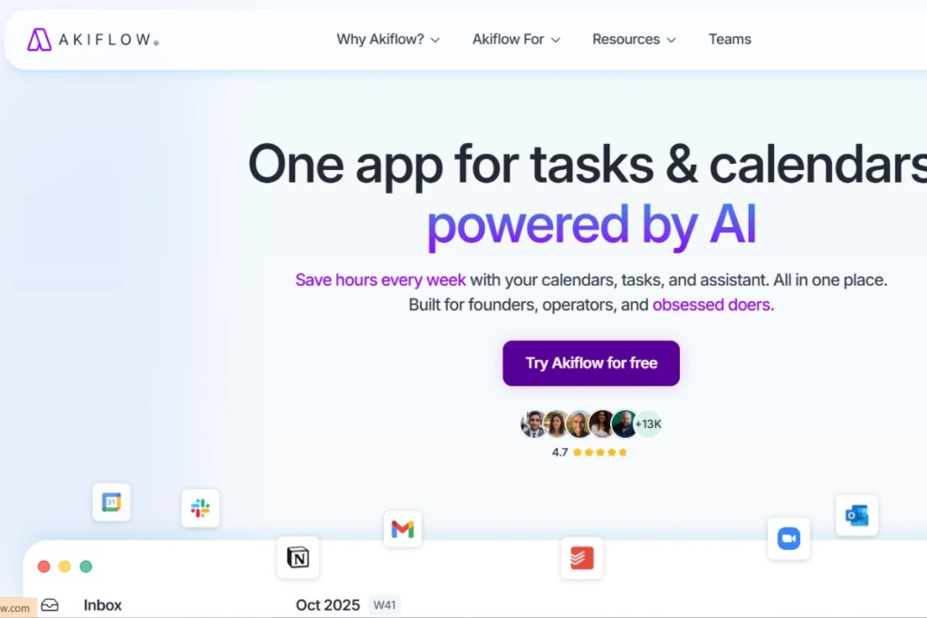 Akiflow functions as an intelligent command center, consolidating tasks from multiple sources, Todoist, Asana, Gmail, Slack, into a unified dashboard with integrated calendar view. The platform’s smart aggregation prevents the fragmentation that undermines intentional planning.
