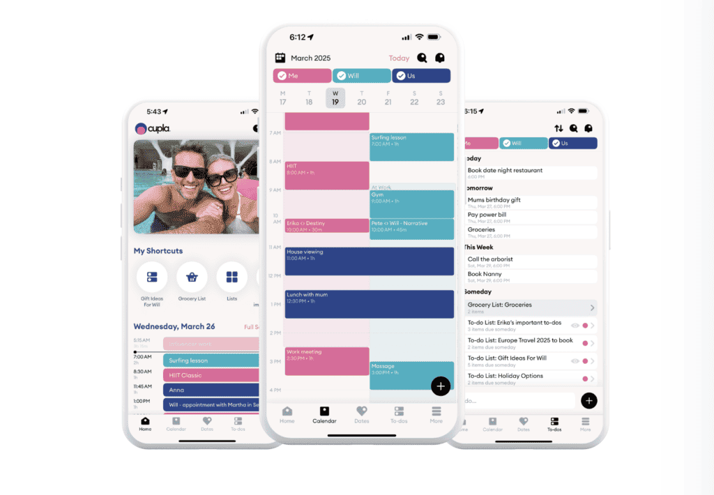 - Visual colour-coded schedule: Helps both partners understand each other’s availability, reducing scheduling conflicts.